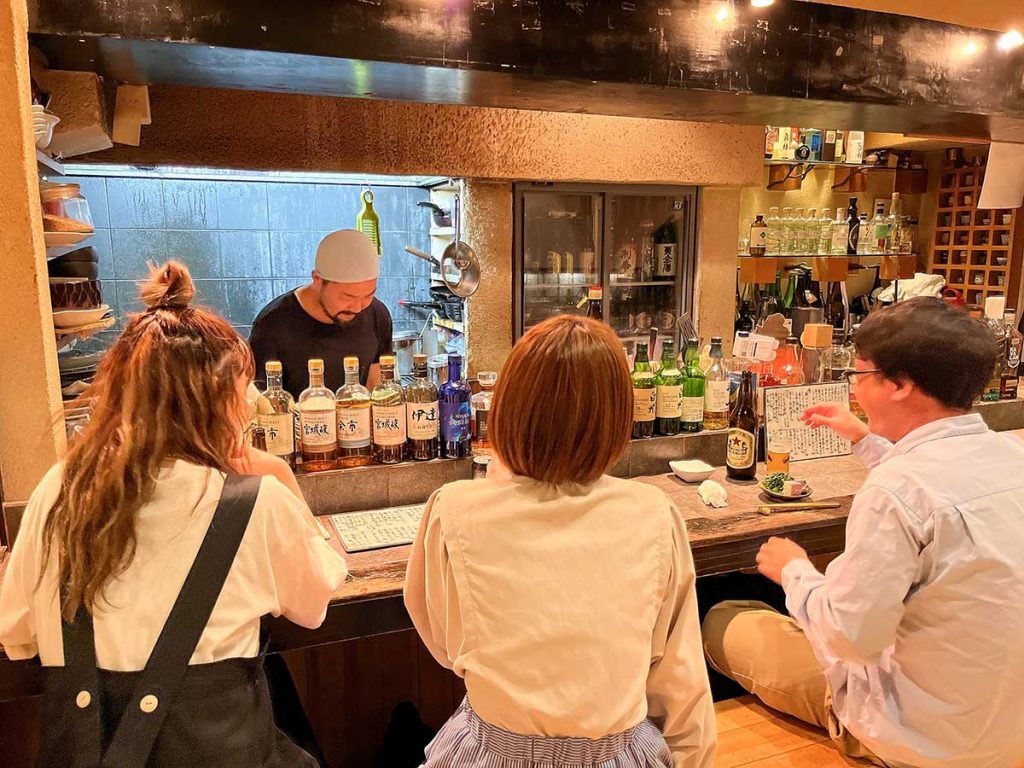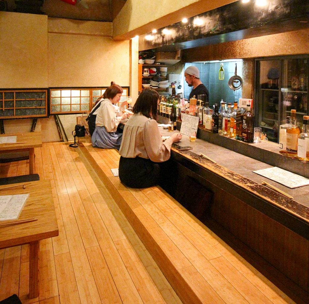 掘りごたつ式のカウンターなので、隣に座ったお客さんとも、一度言葉を交わせばすぐに仲良くなれる距離感もこの店ならでは