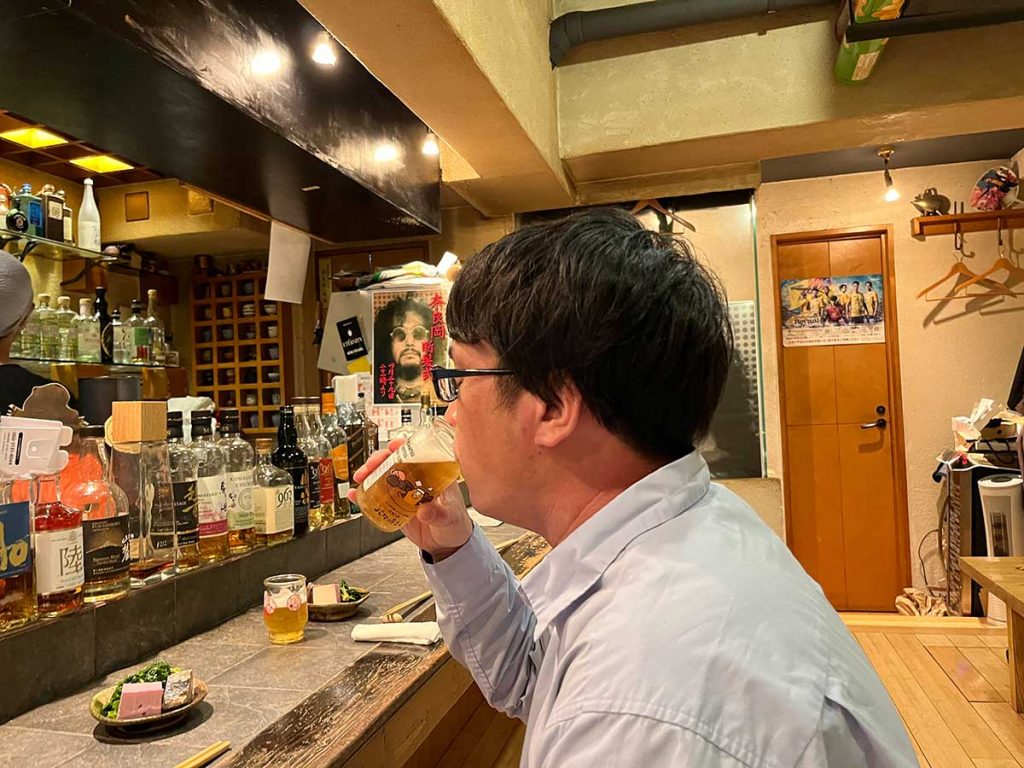 好きな酒はビールとホッピー。数人で飲むのも良いが、1人飲みも大好き。時には1人で3~4軒はしごすることもある