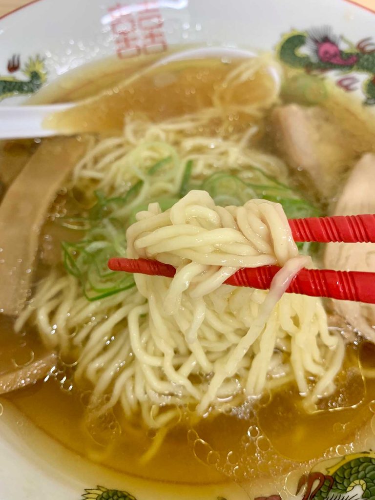 麺は中細のちぢれ。店内で手揉みで仕上げているようでした。ややゆるめのちぢれで、スープによく絡みます