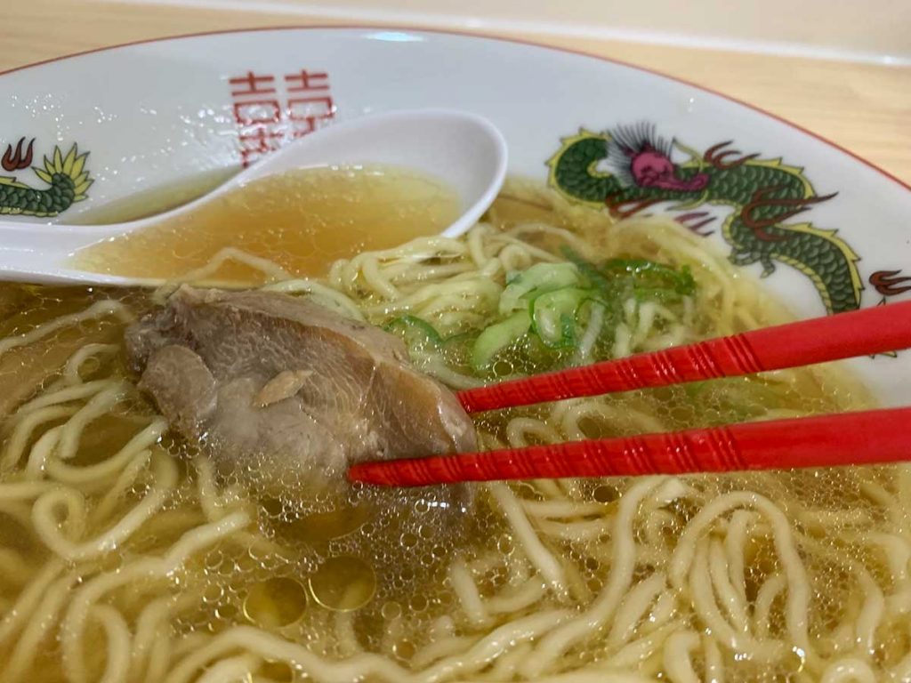 鶏油が浮いたスープは、少し濁ったやさしい色合いの昔ながらの中華そば!
