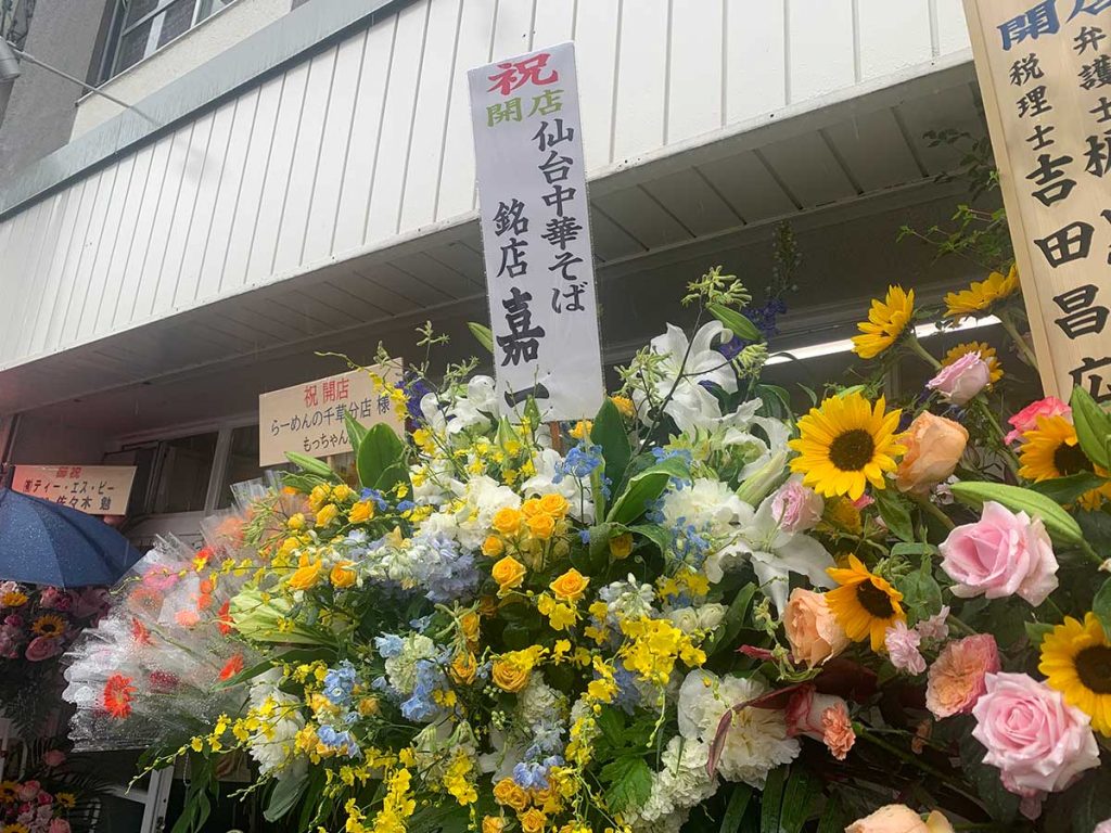 『千草』は、仙台の超人気ラーメン店『嘉一』の店主さんの修業先!『嘉一』さんからもお花がきていましたよ