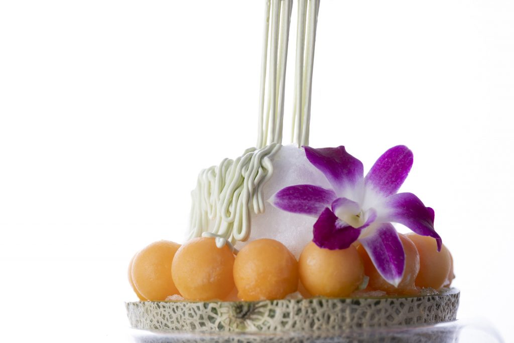 昨年好評だったメロンのかき氷は、雪山をモチーフにした「メロンモンブラン」としてリニューアル。