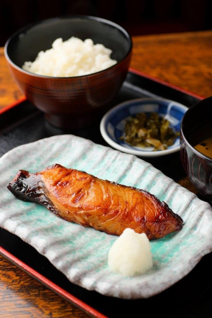 銀ひらす定食(760円)/ブリによく似た味わいの「銀ひらす」を粕漬けに。ほのかな酒の風味が魚の臭みを取るだけでなく、発酵によって増した旨みや栄養がたっぷり