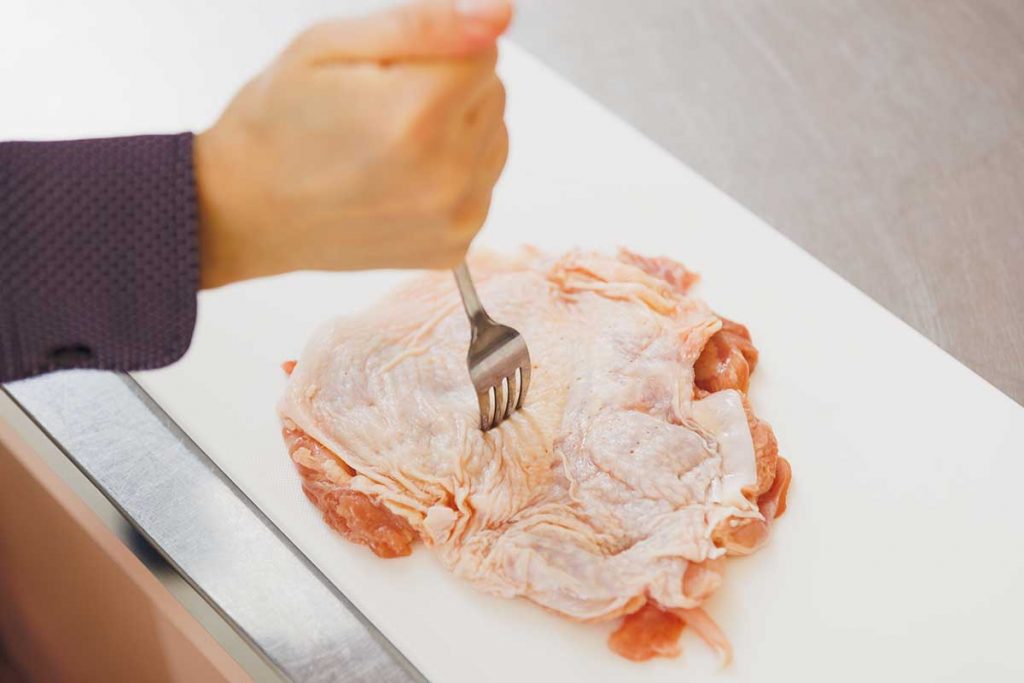 (※1)しっかりと味が染み込むよう皮面全体にフォークで穴をあけましょう。