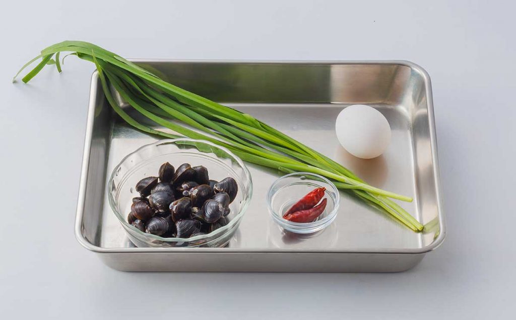 ❸鍋に水としじみ、半分に切った唐辛子を入れ火にかける。しじみの口が開いたら弱火にしてアクを取り、ナンプラーと②を加えたらでき上がり。