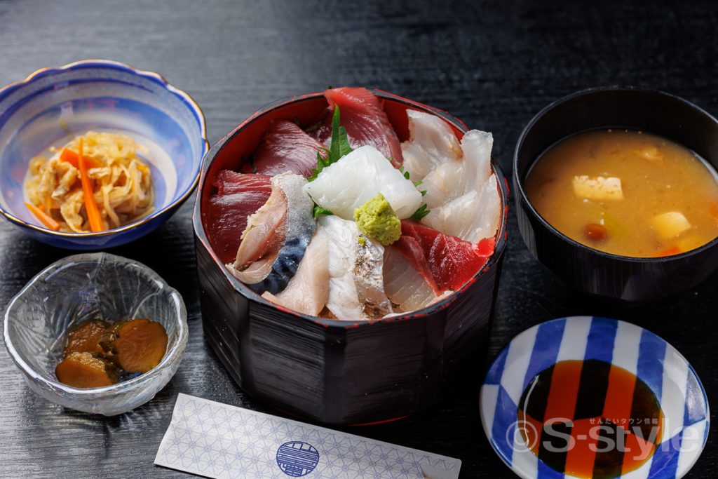 ランチ限定「海鮮丼」(1,100円)。あら汁や茶わん蒸しも一つひとつ丁寧に仕立てられています