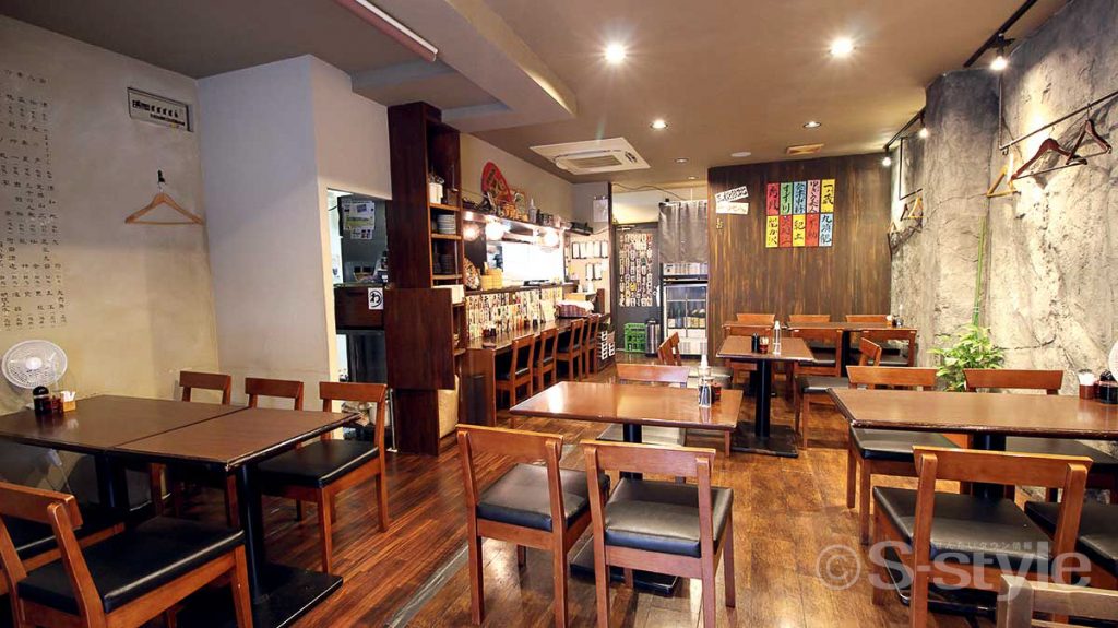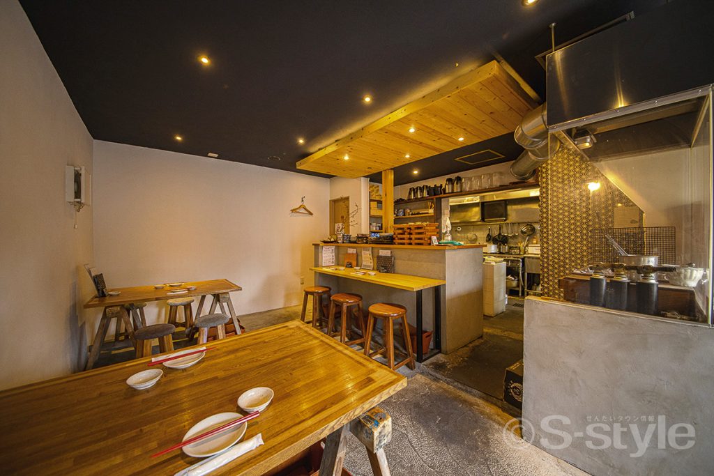 店内手前はカウンターとテーブル席。奥には広々とした座敷席も用意
