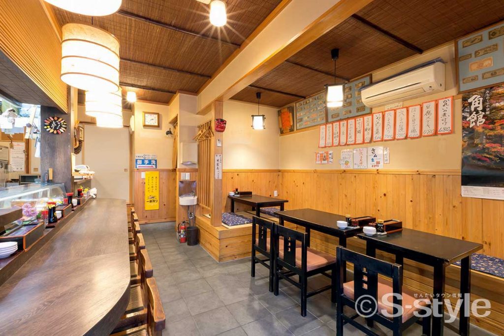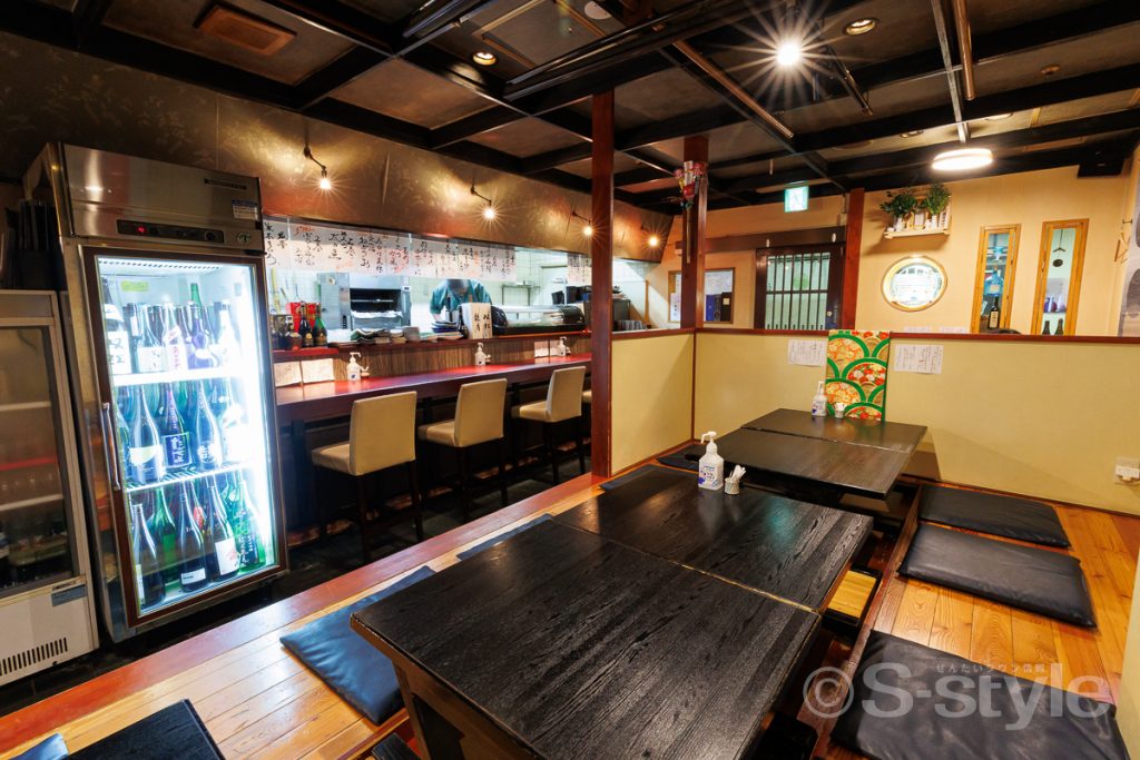 店内にはテーブル席、カウンター席、小上がり席があります。夜は新鮮な刺身や一品料理と一緒に宮城の地酒を楽しむことができます