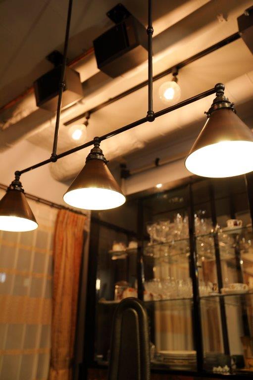 ご主人が好きな「スチームパンク」。天井のむき出しの配管やステンレスのトグルスイッチなど、レトロでメカニカルなテイストで統一