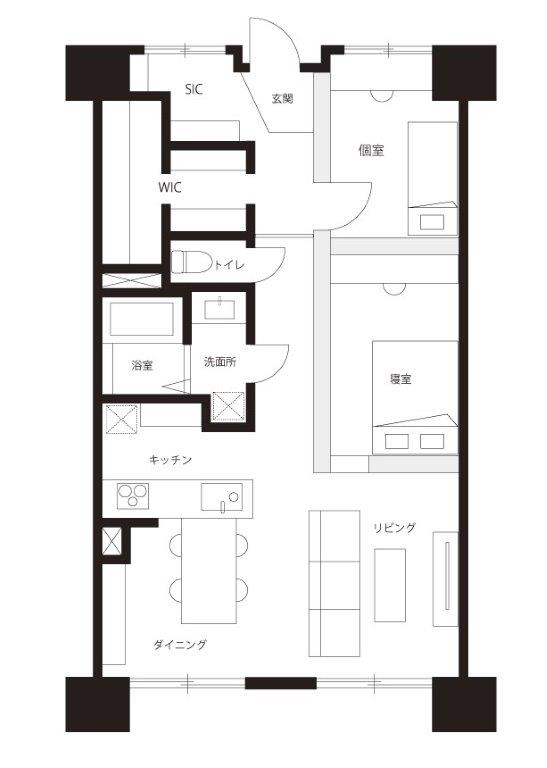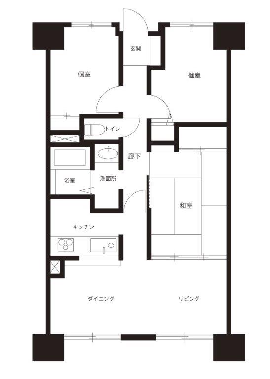 【Beforeの図面】3LDKのマンション。水回りの老朽化、結露やカビの発生といった問題も。