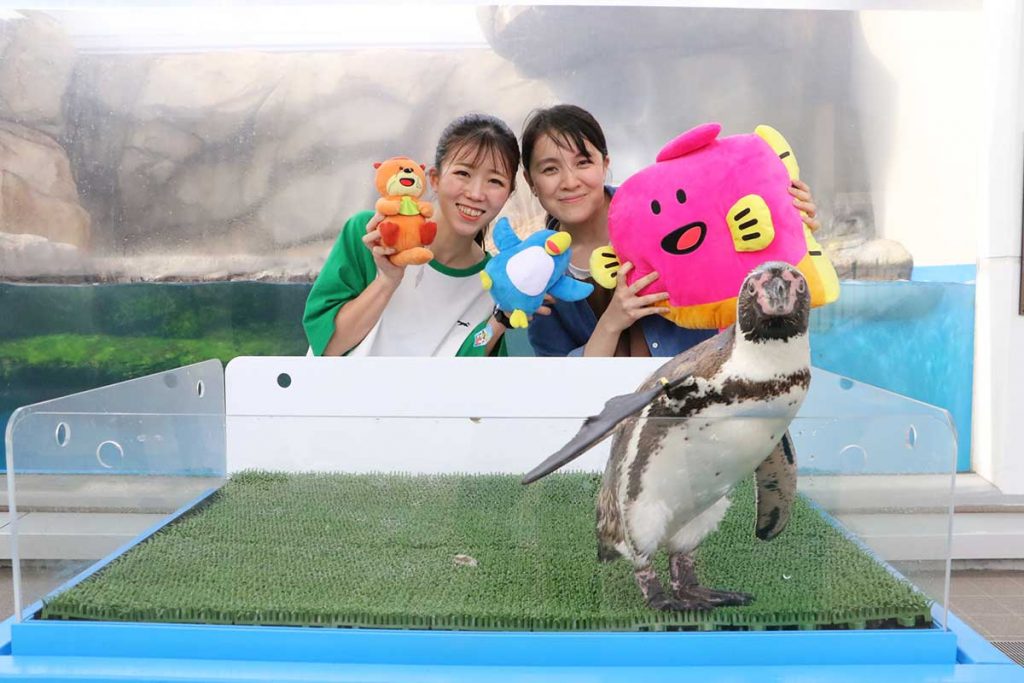 生きものたちとふれあいができる「オタリアフレンドリータイム」、「ペンギンフレンドリータイム」の記念撮影にも「たべっ子水族館」のキャラクターがコラボ!