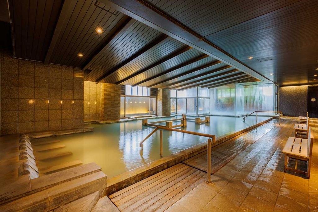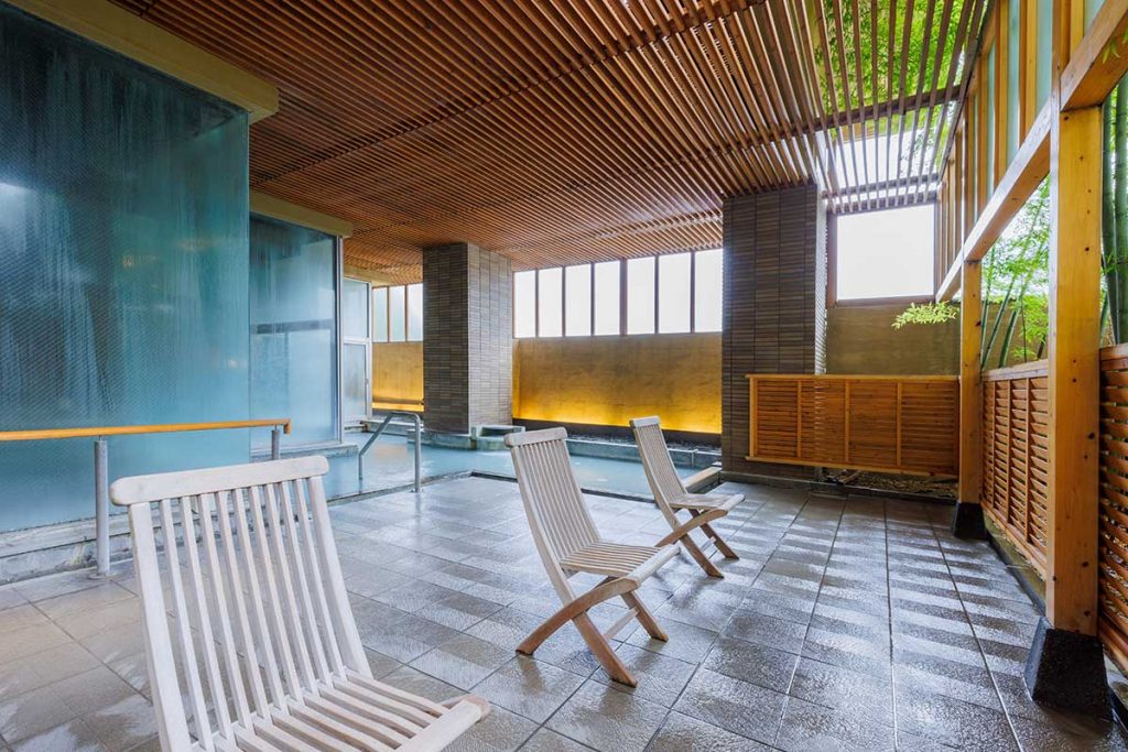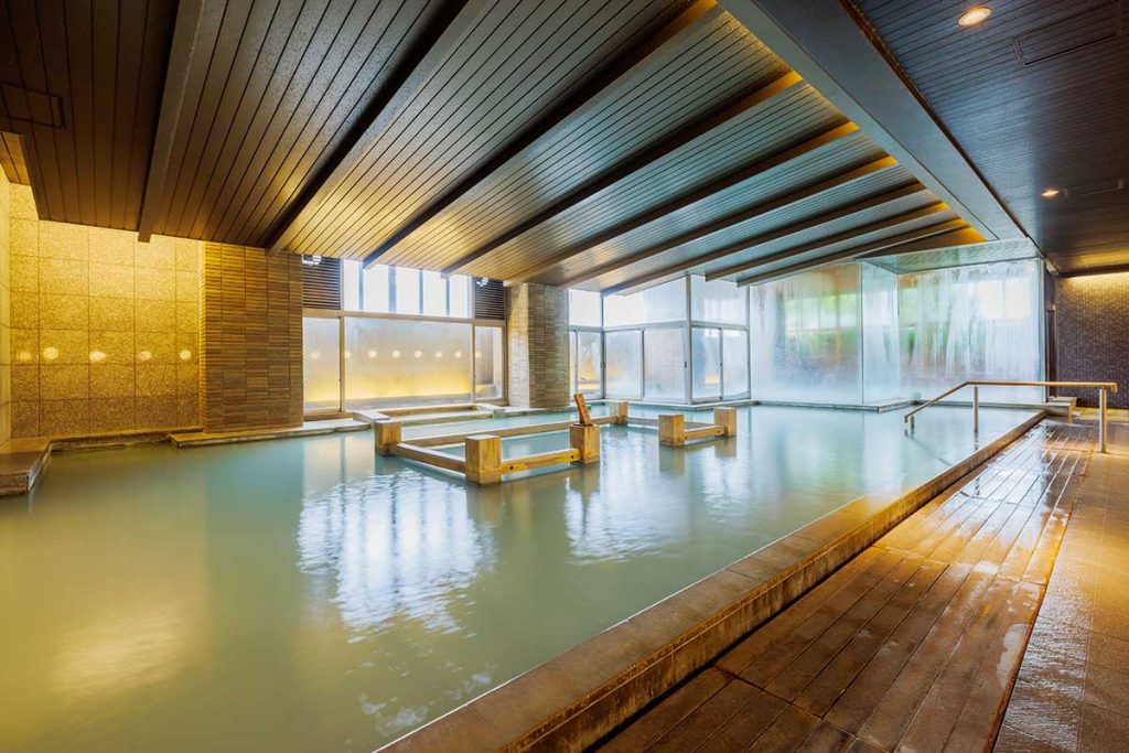 大浴場は2つあり、趣の異なる湯船が計5つ。湯船によっても湯色が違うので、館内で色とりどり湯巡りを楽しめます。