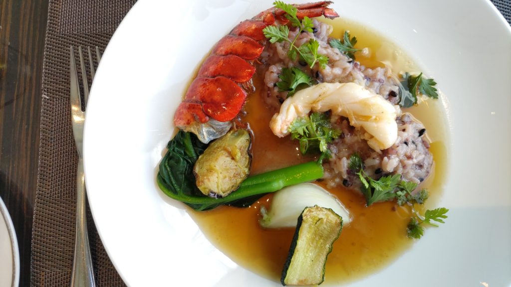 一緒に行った先輩は「オマール海老のロティ 多賀城市産古代米とウニのリゾット 国産レモン香るバター」(コース料金+1,900円)をセレクト。向かいの席から果てしなくイイ香りが届いたのですよ…ヨダレじゅるり。