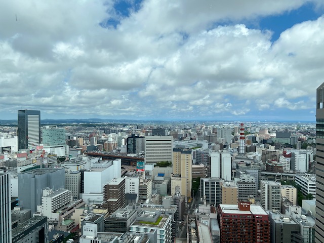 『レストラン シンフォニー』の窓際席から見える景色。この日は雲が少し多かったものの、キレイな空と街並みが遠くまで見渡せました。