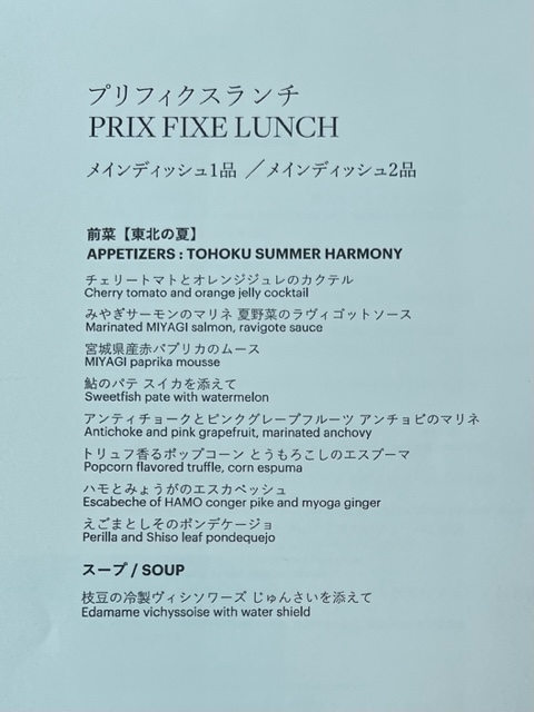 前菜のメニューはこんな感じ。あたり前ですが、絶対に家ではできない逸品ばかり(そりゃそうだ)。あぁ、思い出すだけで贅沢です。