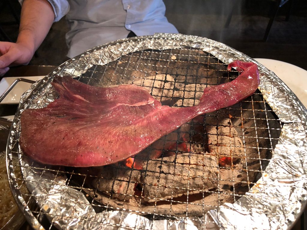 七輪からはみ出しそうなほど大きい牛タン! じっくり焼いたら自分で好きな大きさにカットしていただきます。ひと切れ口に入れたら、その柔らかさとジューシーさに驚くこと間違いなしですよ。マタギはもう『ちばす七輪』の虜です。このほかにも誌面では紹介しきれなかった名物がまだまだあります。ビール片手に肉を頬張りたい衝動が抑えきれなくなったそこのアナタ! 今日の夜は『ちばず七輪』にダッシュですよ〜!