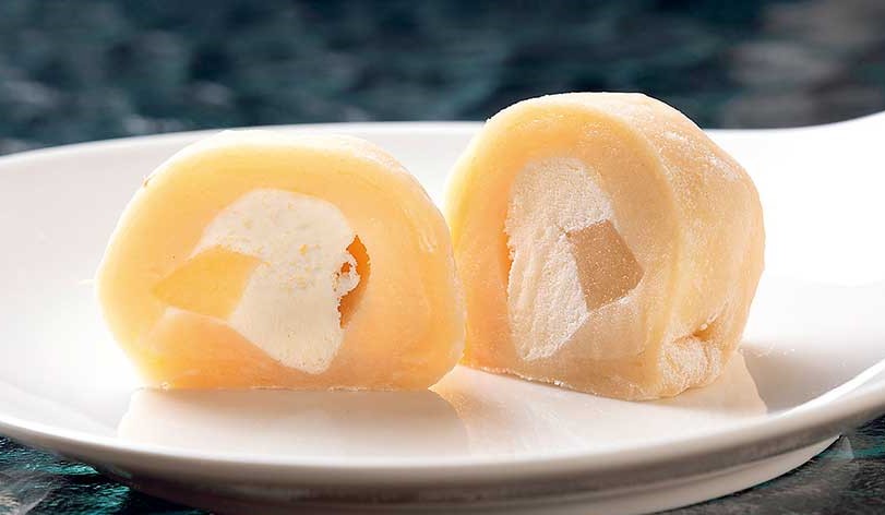 生クリームと白餡、桃の果肉をお餅で包んだ新感覚スイーツ。一度食べたら忘れられないおいしさです。