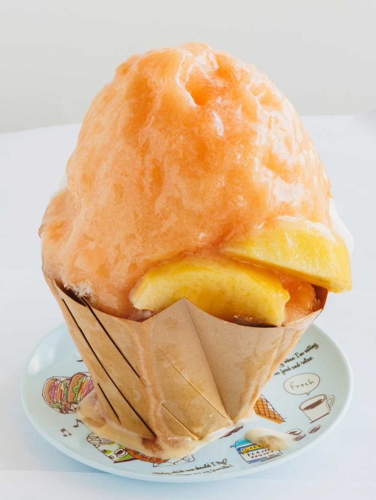 7~9月中旬限定で登場するかき氷は、地元の桃を贅沢に使ったソースが美味。おいしいかき氷を味わえるのは、現地に足を運んだ人の特権!