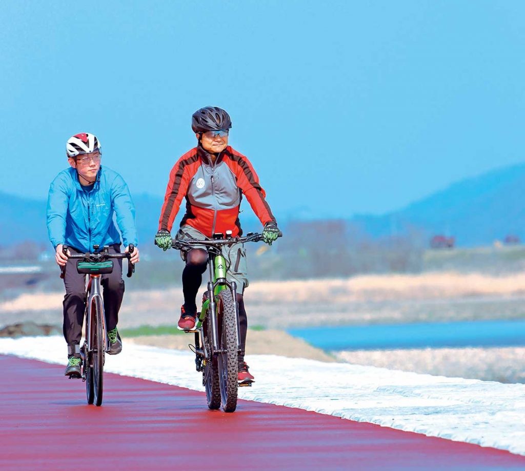 桃畑の中を通る“桑折ピーチライン”と阿武隈川の間に誕生した『ピーチリバーク157』。多目的広場や花畑、遊歩道などが整備された親水公園です。四季折々の景色を眺めながら、日帰りキャンプやマイ自転車でのサイクリングが楽しめます。