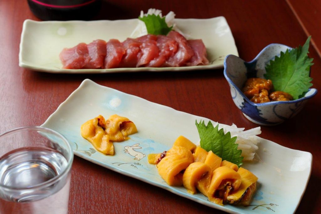 「自慢のほや刺し」(700円)、「自家製塩うに」(850~1,000円)、「メバチマグロの刺身」(1人前750~800円)