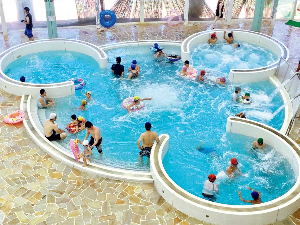 全天候型ドーム内の温水プールだから雨も猛暑もへっちゃら!岩場をすり抜けるスリルがたまらないウォータースライダーは子どもたちに大人気。コースは短かく、待ち時間なく何度も滑れるのもうれしい。日帰り温泉や食事と合わせて1日をのんびり寛ぐのがおすすめですよ。