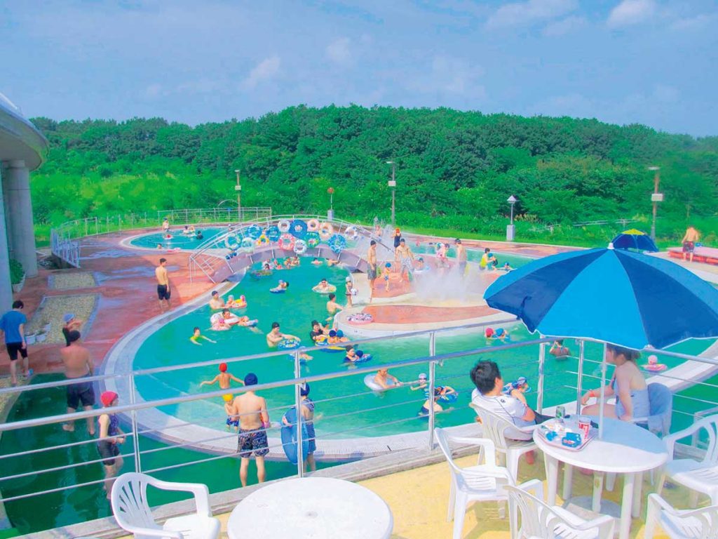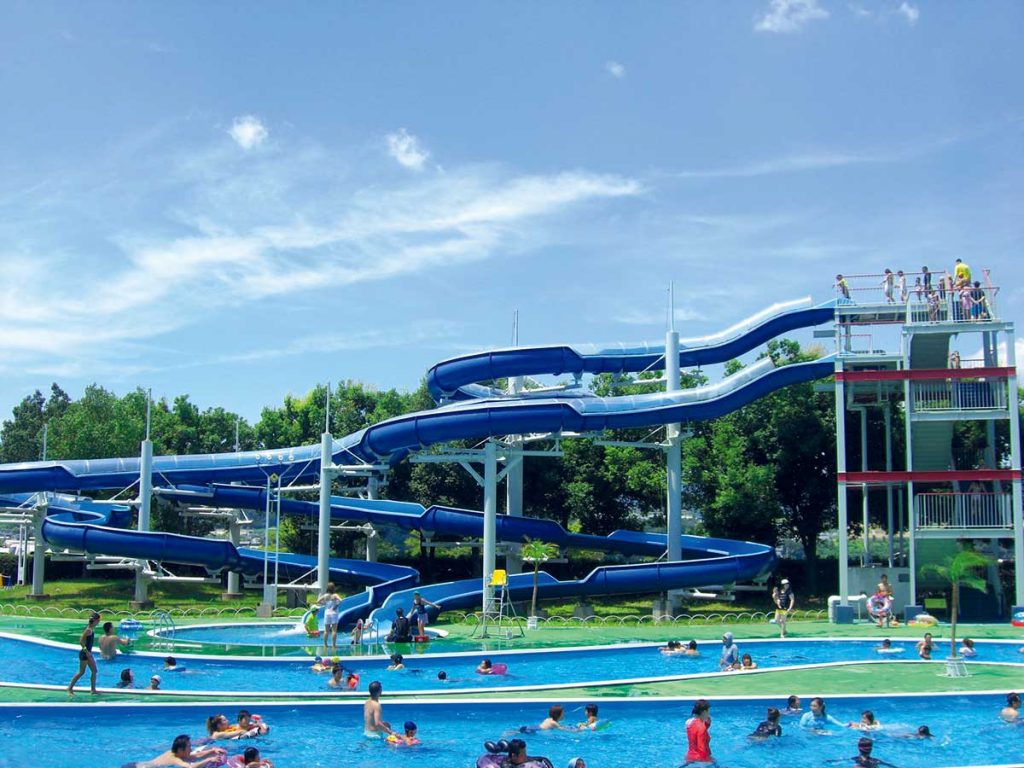 126mと118mの二つの巨大ウォータースライダー、そして全周160mの流水プールが魅力の屋外プール。児童用のプール(深水60㎝)やスライダー、さらには幼児用のプール(深水30㎝)もあるので親子連れでも安心して楽しめます。施設内では、軽食売店やプール用品の販売、浮き輪のレンタルなども実施していますよ。