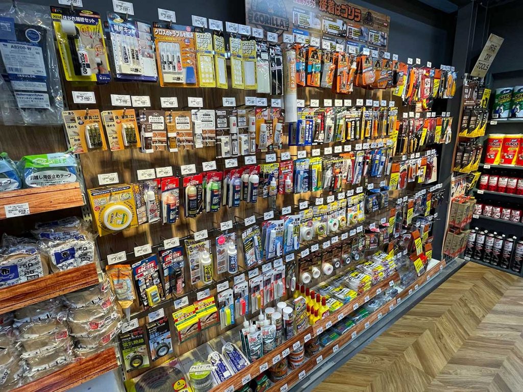 街中だとなかなか手に入らない工務用品も取り揃え。郊外のホームセンターに行かなくても困った時に買い物ができるのはうれしい!