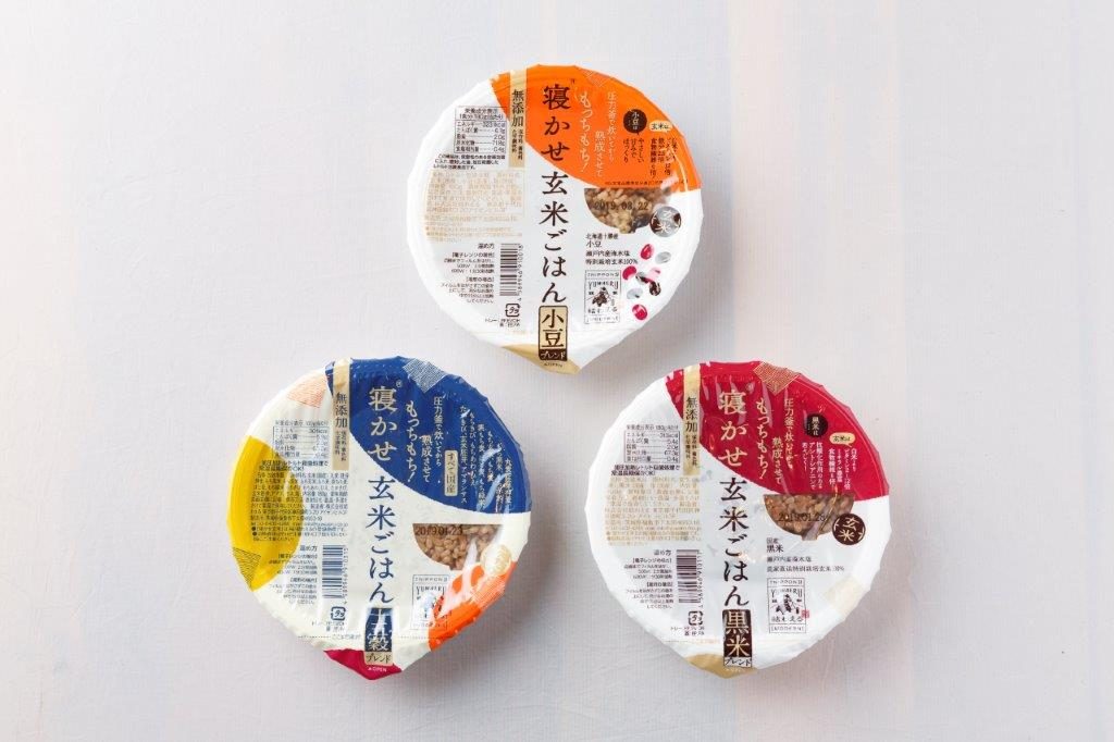 パックの寝かせ玄米は全6種(286円~)。美を意識する女性には「十五穀ブレンド」「黒米ブレンド」がおすすめ