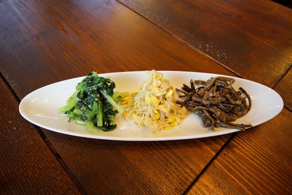そしてこってりした口をナムルでさっぱりと。酒、つまみ、酒、つまみの無限ループが始まります。