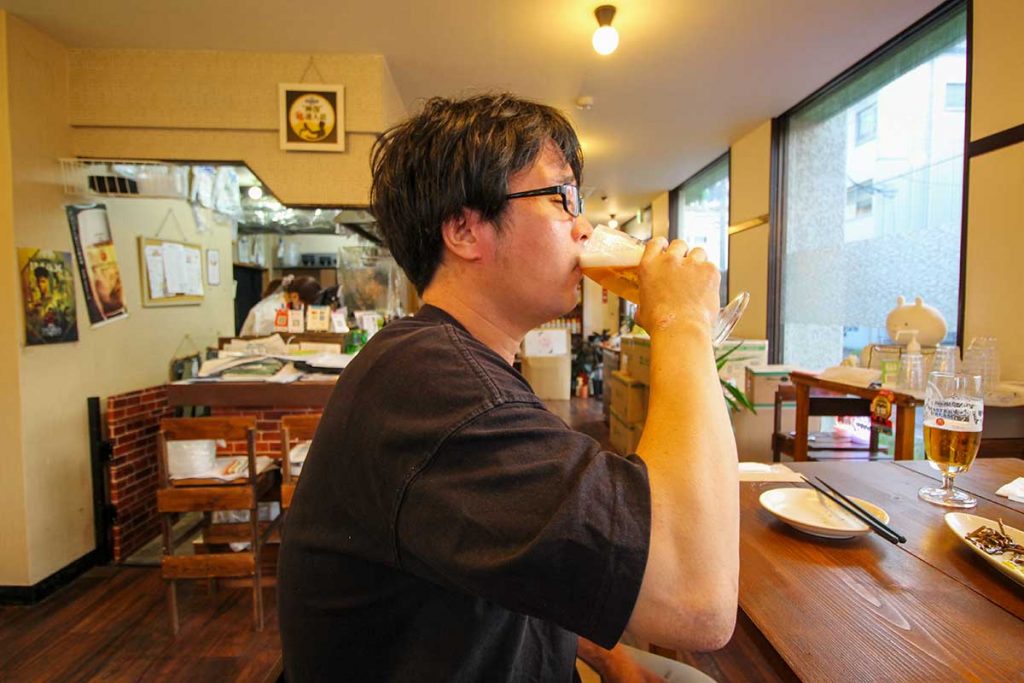 店に着くなり、駆けつけ一杯。全員生ビールをグビっと飲むと、「染みるぅ~!」という声にならない声が聞こえてきます。