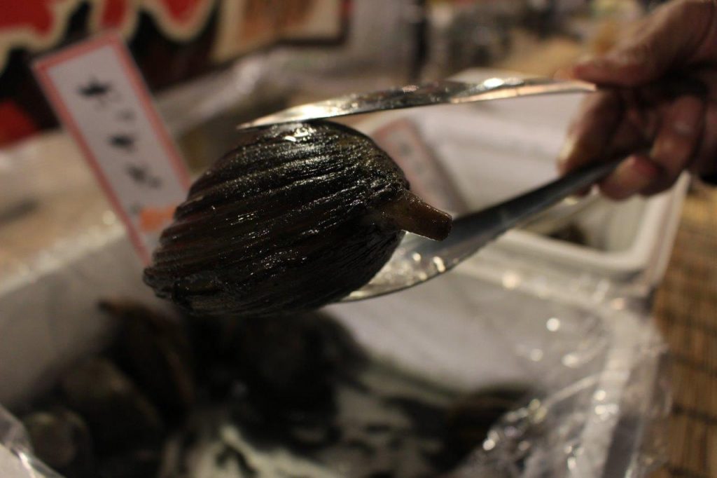 会場にはおいしそうな海鮮がずらり。この貝、い、生きてる…!