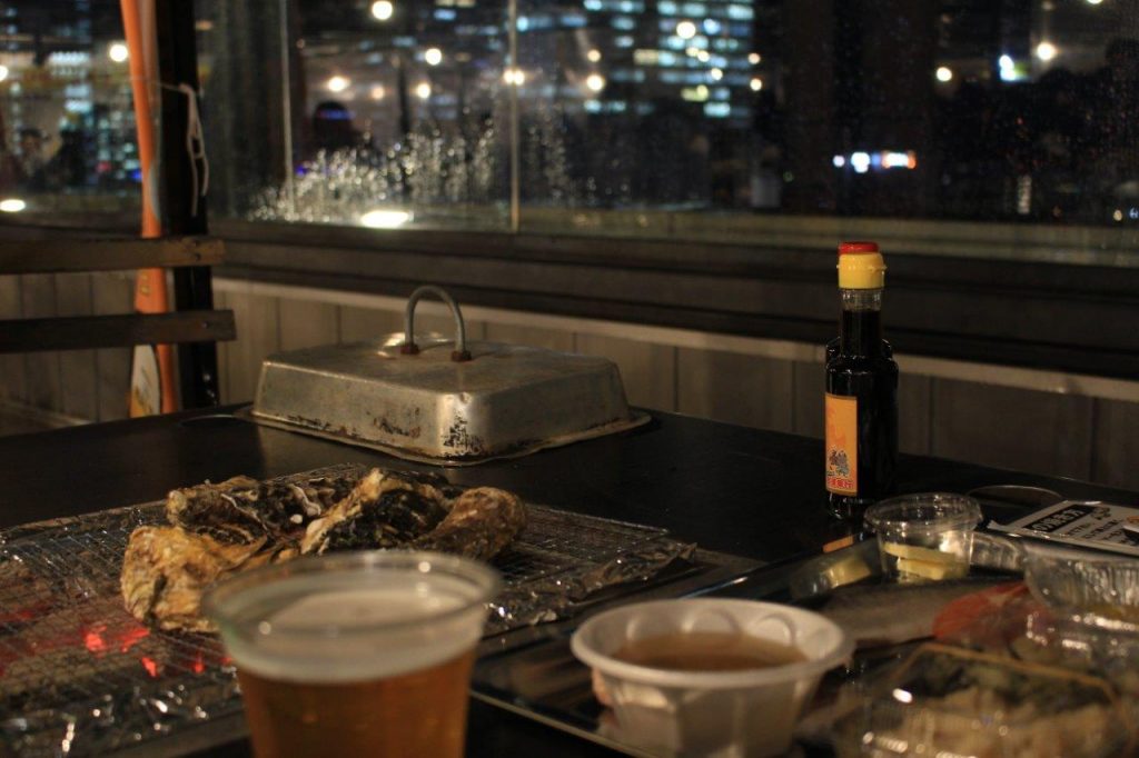 仙台駅を臨むロケーション。こんな街中でカキ小屋なんてはじめてです!