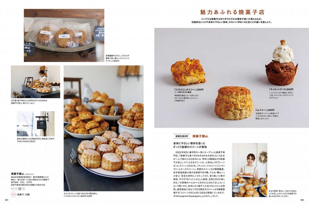 「注目の新店」コーナーでは、ここ1年半の間にオープンした和洋菓子店をピックアップ。仙台市内だけでなく、大崎市などのお店を紹介しています