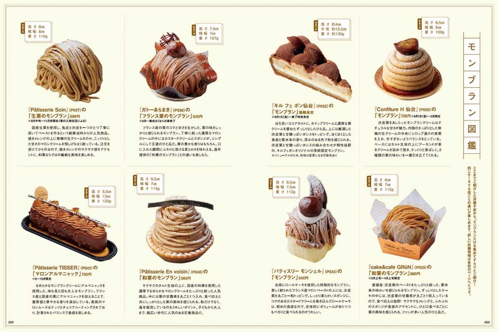 そして、一番のおすすめかも?な「モンブラン図鑑」コーナー。ビジュアルも味わいも、お店ごとの違いが表れていますので、ぜひ見比べてみてくださいね