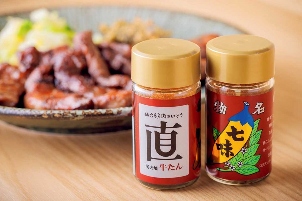長野県の善光寺門前にある『八幡屋礒五郎』で調合した、オリジナル七味も販売。ガーリックやコリアンダー、花椒などのスパイスが、肉の旨みを一層引き立てる(990円)