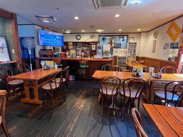 カウンター席とテーブル席がある。セットはほかに「半チャーハン+ラーメン」「チャーハン+半ラーメン」があり、いずれも850円
