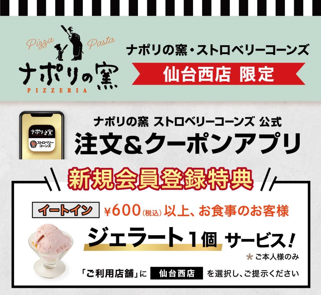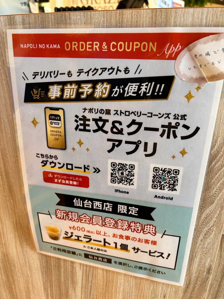 さらに食後は仙台西店限定のアプリ特典!アプリの新規会員登録で、税込600円以上食事のお客さまに「ジェラート1個サービス」とのことで、こちらももれなくゲット。