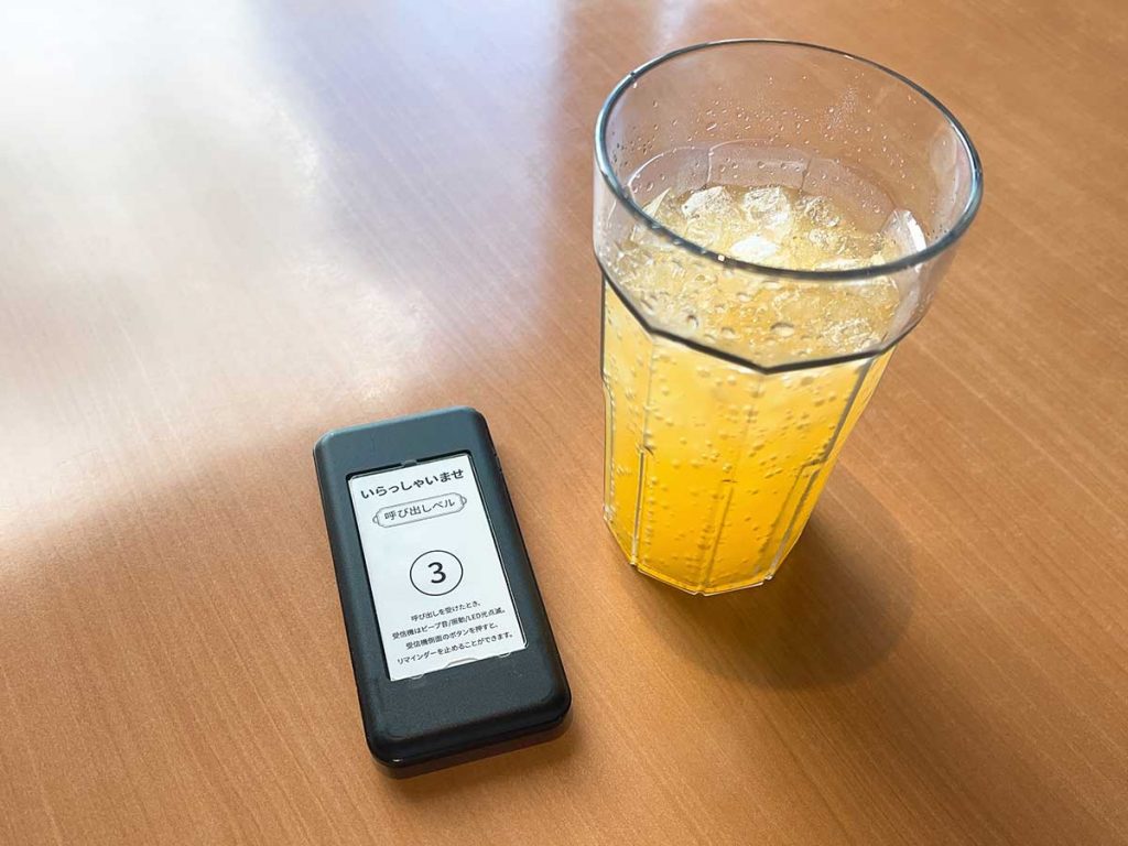 注文はフードコートスタイル。入口のカウンターで注文し、呼び出しベルを持って席で待ちます。