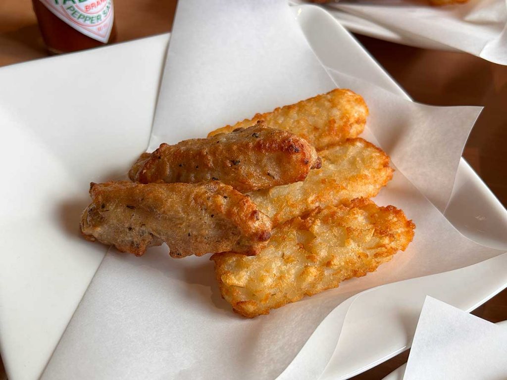 全国で仙台西店限定(2023年8月現在)ということで、これもいただくしかない!ソーセージが入った「フォンデュソーセージ」を実食!