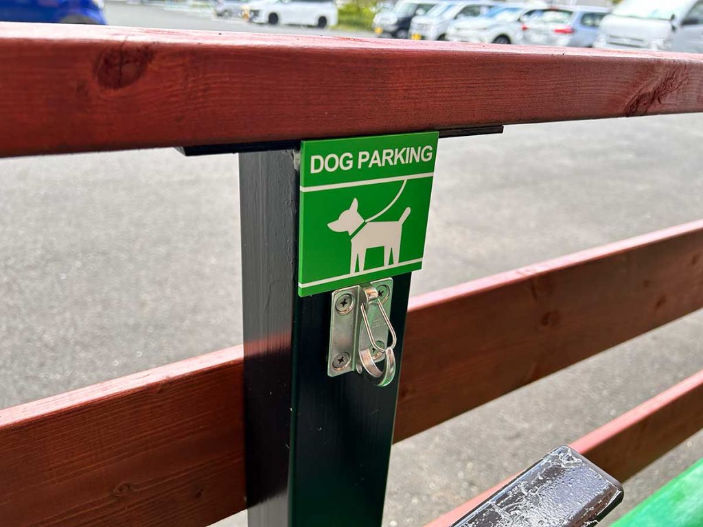 リードを係留できるフックも備え付けられていて、ワンちゃん連れにやさしい