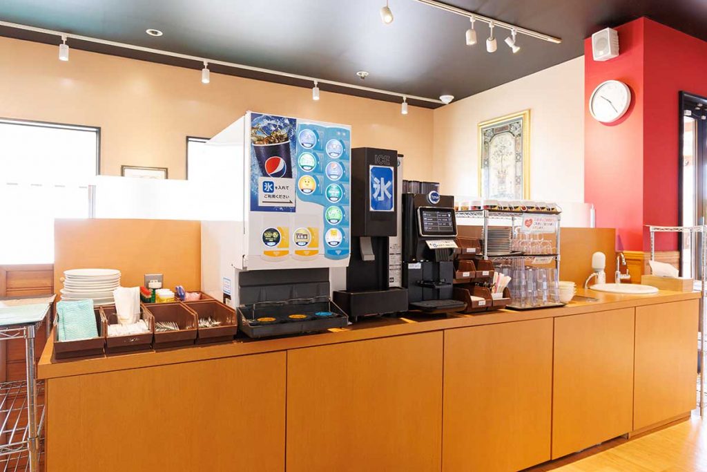 飲み物はドリンクバー。食事注文なら200円(税抜)で、ランチタイム(~17時まで)はなんと100円(税抜)に(2023年9月30日までの期間限定)。早速、好きなドリンクを片手にピッツァが焼き上がるのを待ちます
