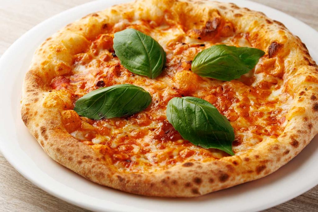 あつあつでチーズがとろり。ニンニクの効いた特製トマトソースとチーズ、バジル、生地のおいしさが口中にあふれる