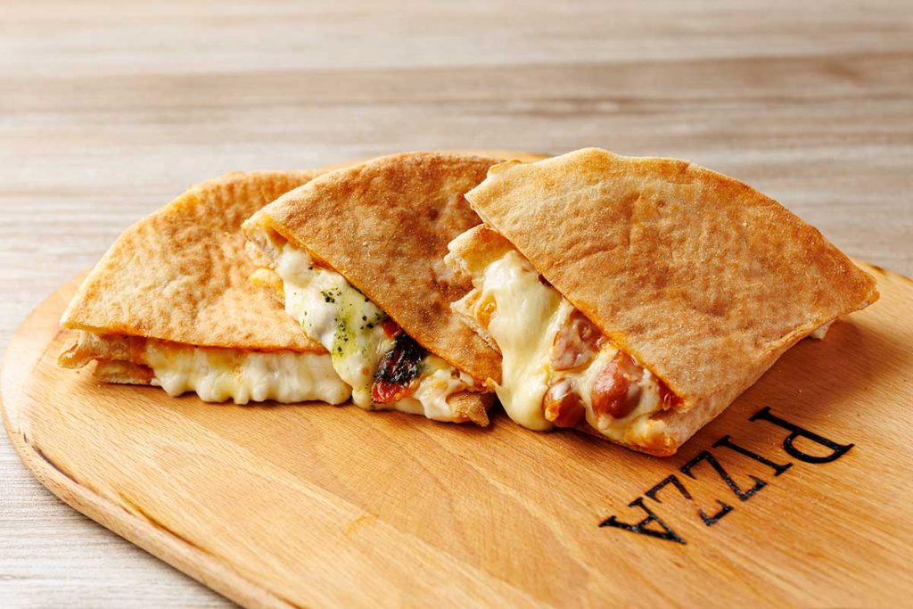 本場イタリアではポピュラーなワンハンドピッツァをイメージした新商品で、1枚のピッツァを4つに折って重ねたもの。