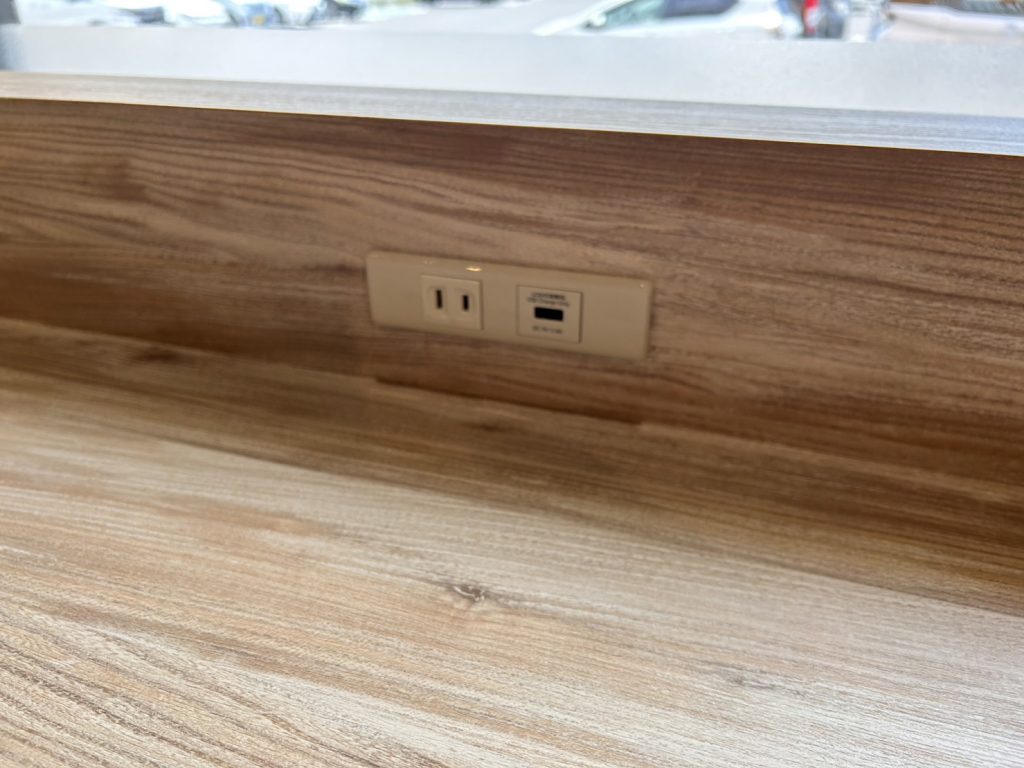 カウンター席はおひとりさまでも気兼ねなく過ごせそう。カウンターは全席コンセント付なのも魅力的