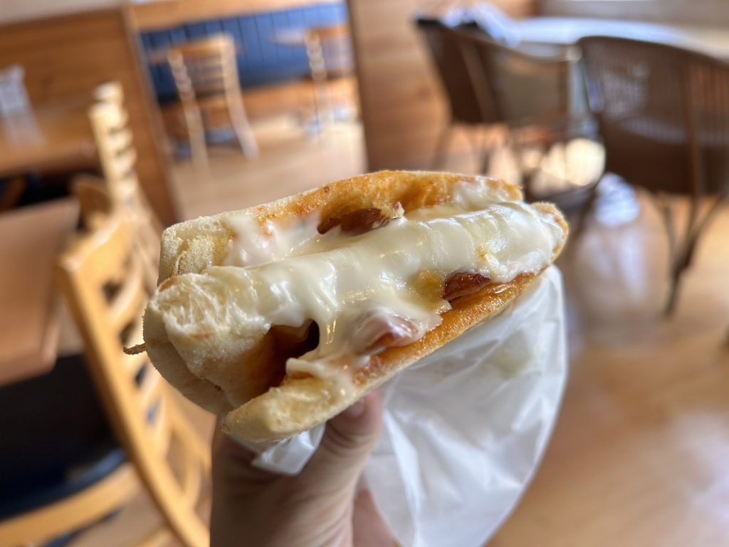 もっちもちの生地に包まれた具材が口の中で一体になり、チーズフォンデュを食べているみたいに口中がチーズでいっぱい🥰チーズ好きには幸せ過ぎます。