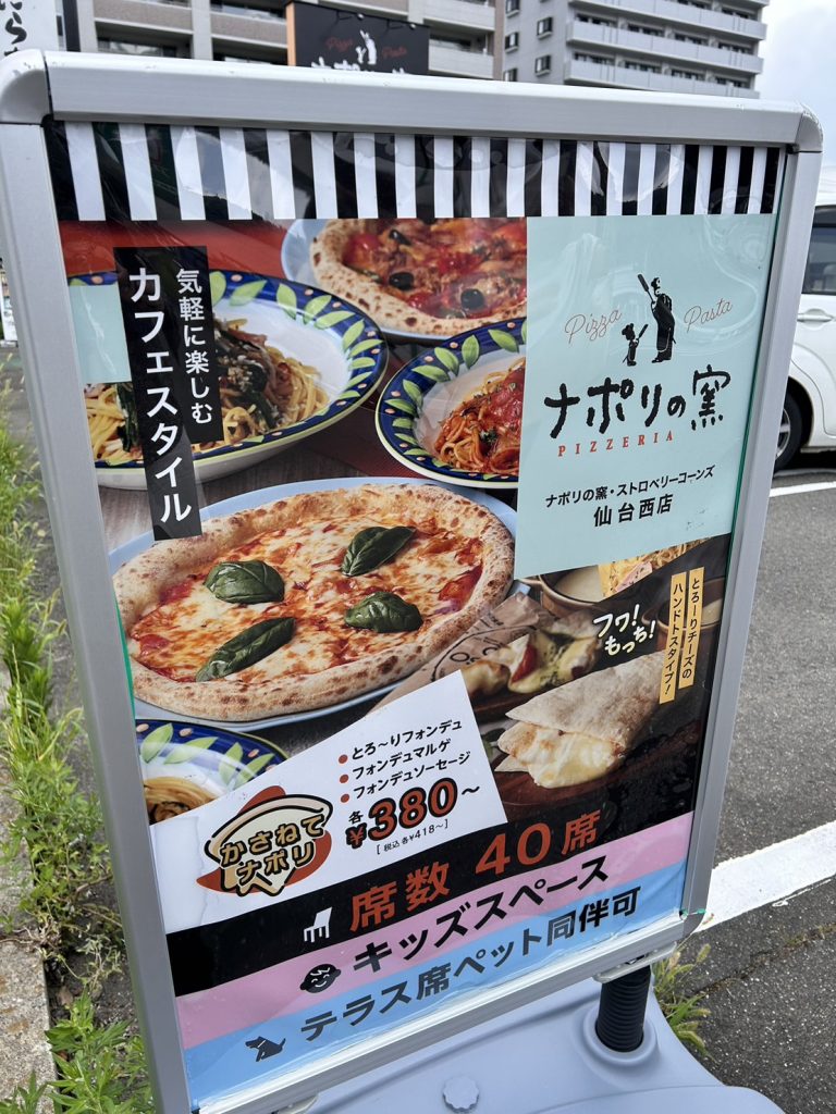 お手頃価格で手作りのおいしい焼き立てピッツァを楽しめる『ナポリの窯・ストロベリーコーンズ 仙台西店』。