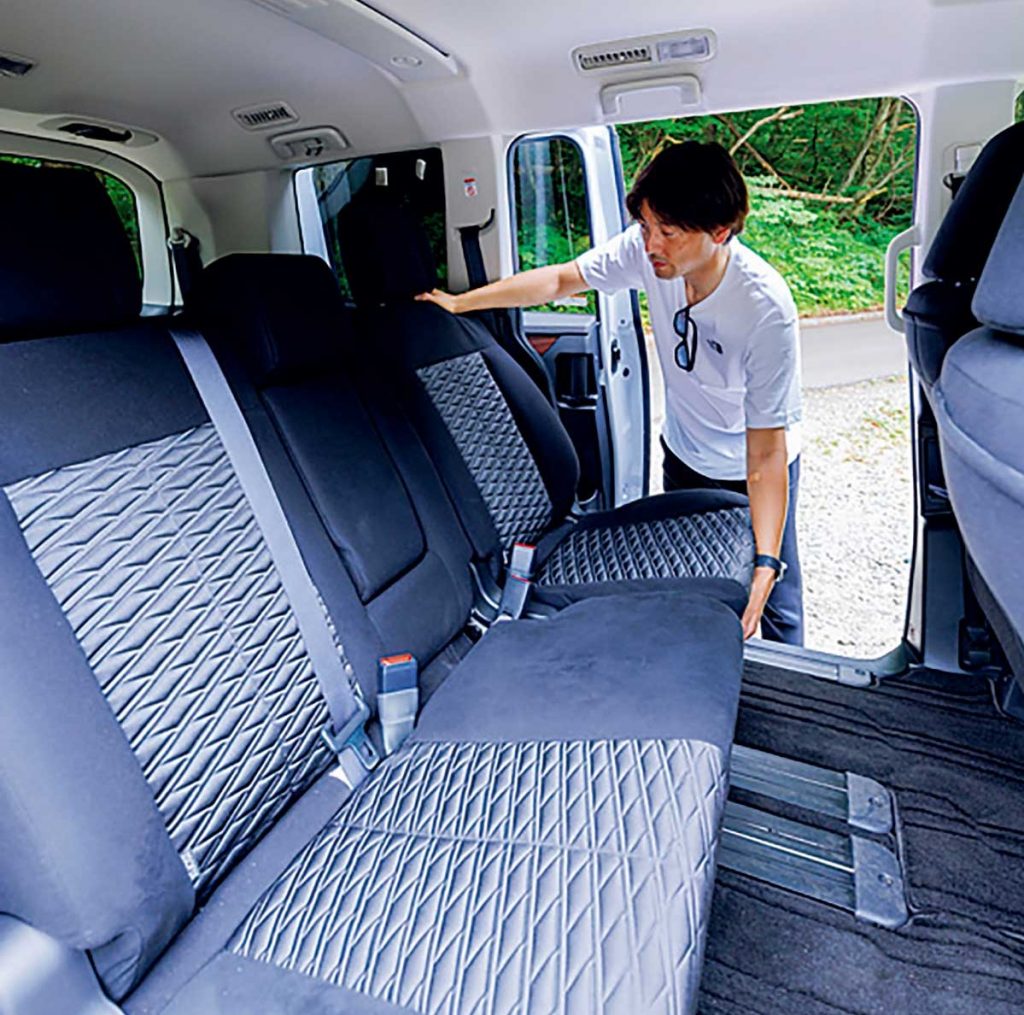 たくさんのキャンプ道具を積んだり、車中泊をしたりと、アクティビティに合わせて車内のアレンジも自由自在。工夫次第で快適な空間を生み出せる余裕のある室内は「デリカ D:5」ならでは