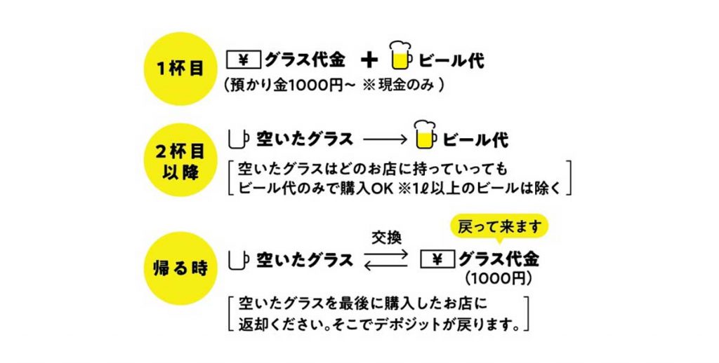 さらに本イベントでは各店でビールを直接購入する際に、グラス代金を一時的に預かり、グラス返却時にその代金を返却する「デポジット方式」で提供しています