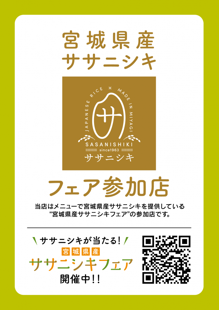 そんなササニシキをより多くの方々に味わってもらおうと、県内の飲食店で宮城県産ササニシキを使ったメニューを提供するフェアが開催されています。