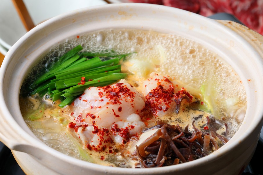 「もつ鍋」(1人前1,382円)。ゴマ味噌ダレとモツとの調和がたまらない